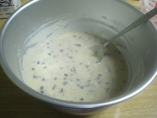 3. Once it is mixed well and most of the lumps are gone, stir in the blueberries.